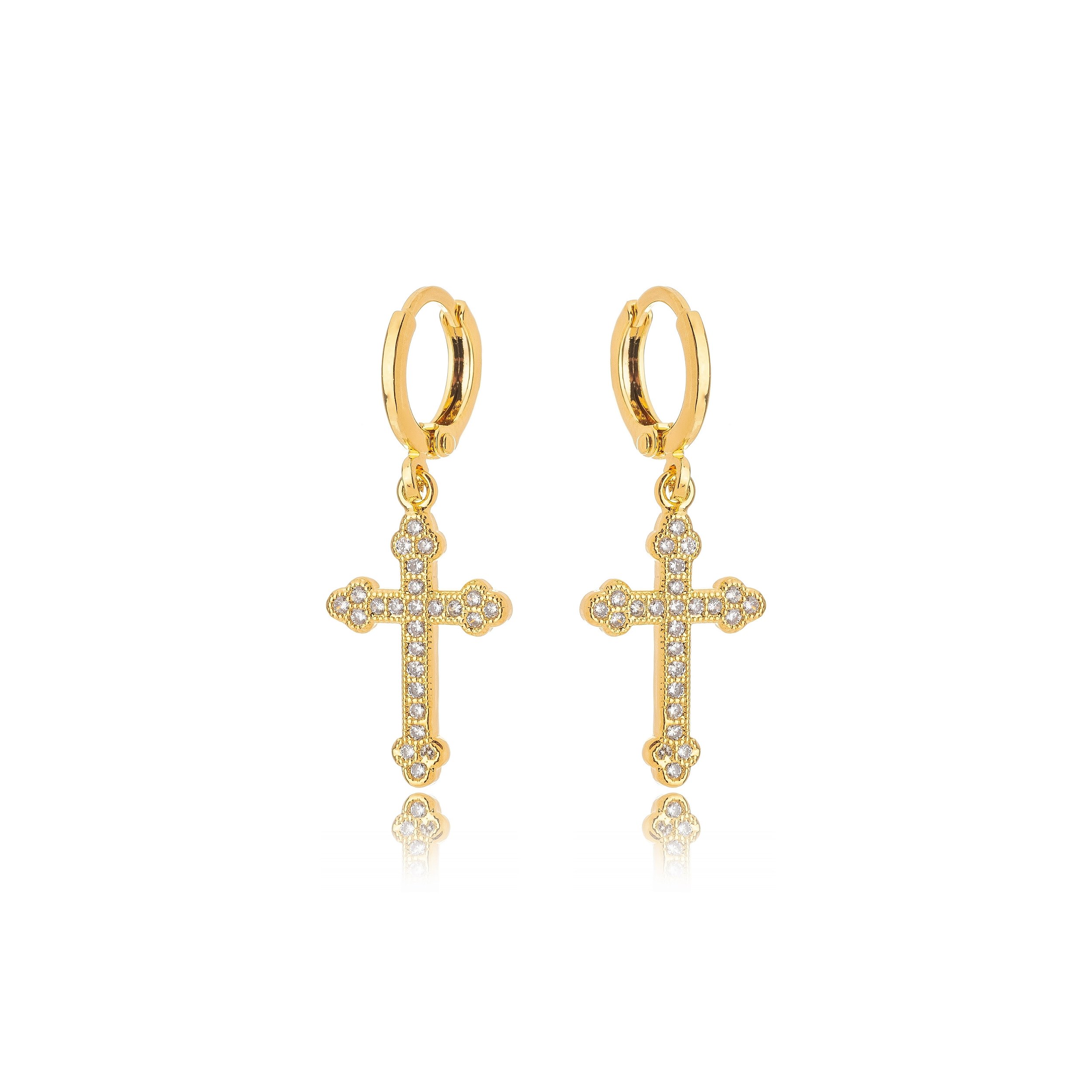 Brinco Argola com Cruz Cravejada – Banho de Ouro Amarelo 18K | Semijoia