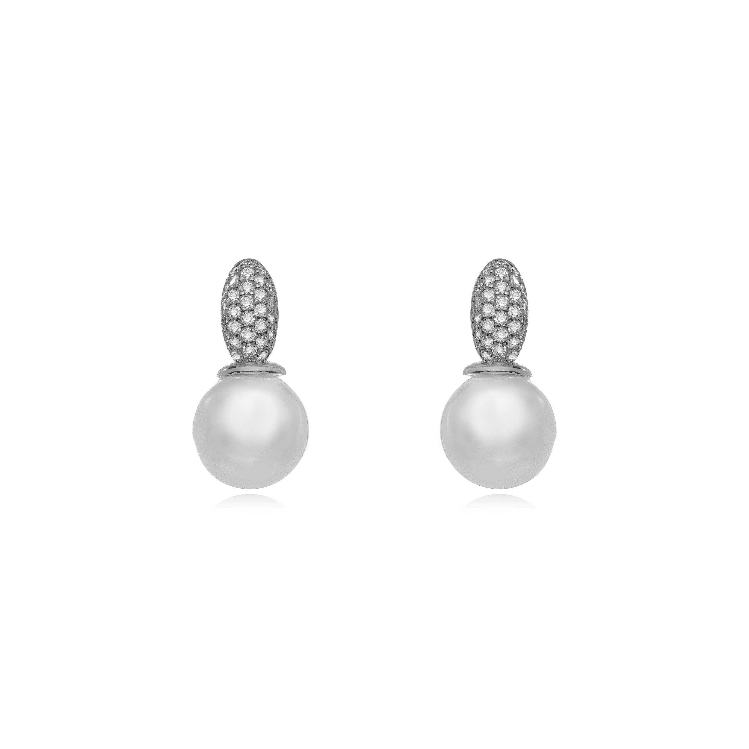 Brinco Cravejado em Micro Zircônias com Pérola em Ródio Branco