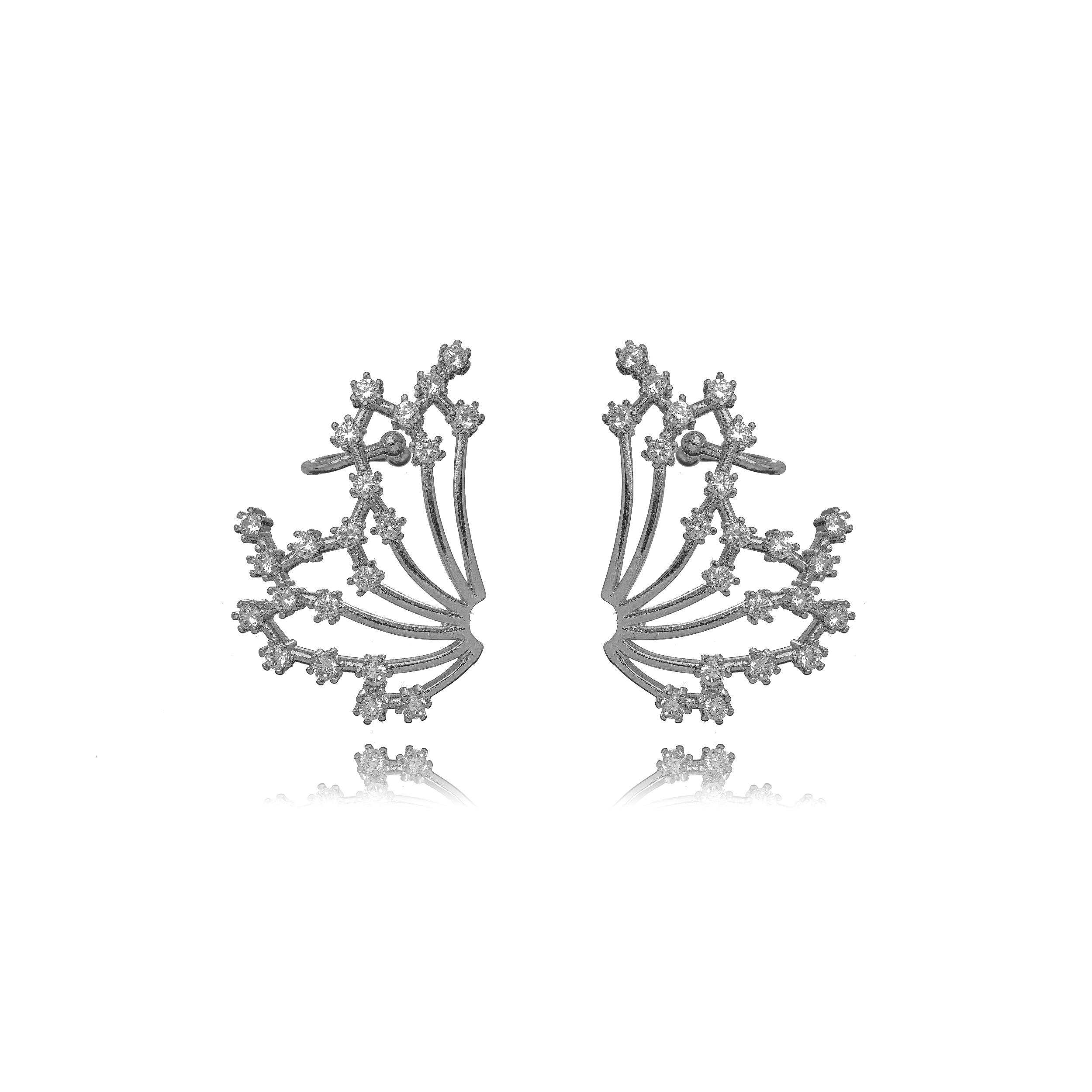 Brinco Ear Cuff Leque Micro Zircônias – Banho de Ródio Branco