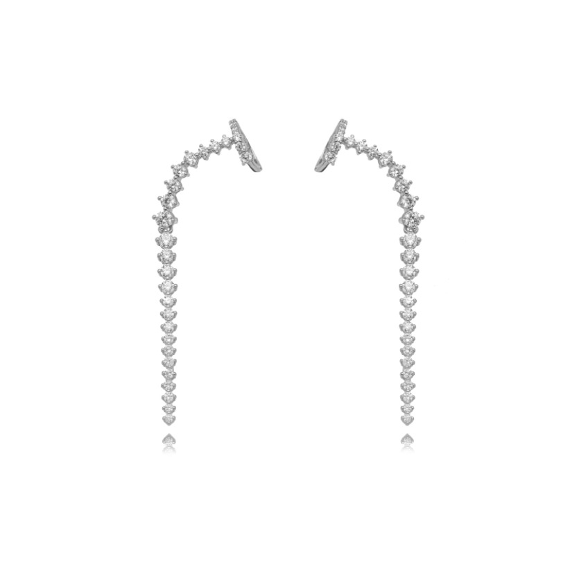 Brinco Ear Line Cristais confeccionado em banho de ródio branco.