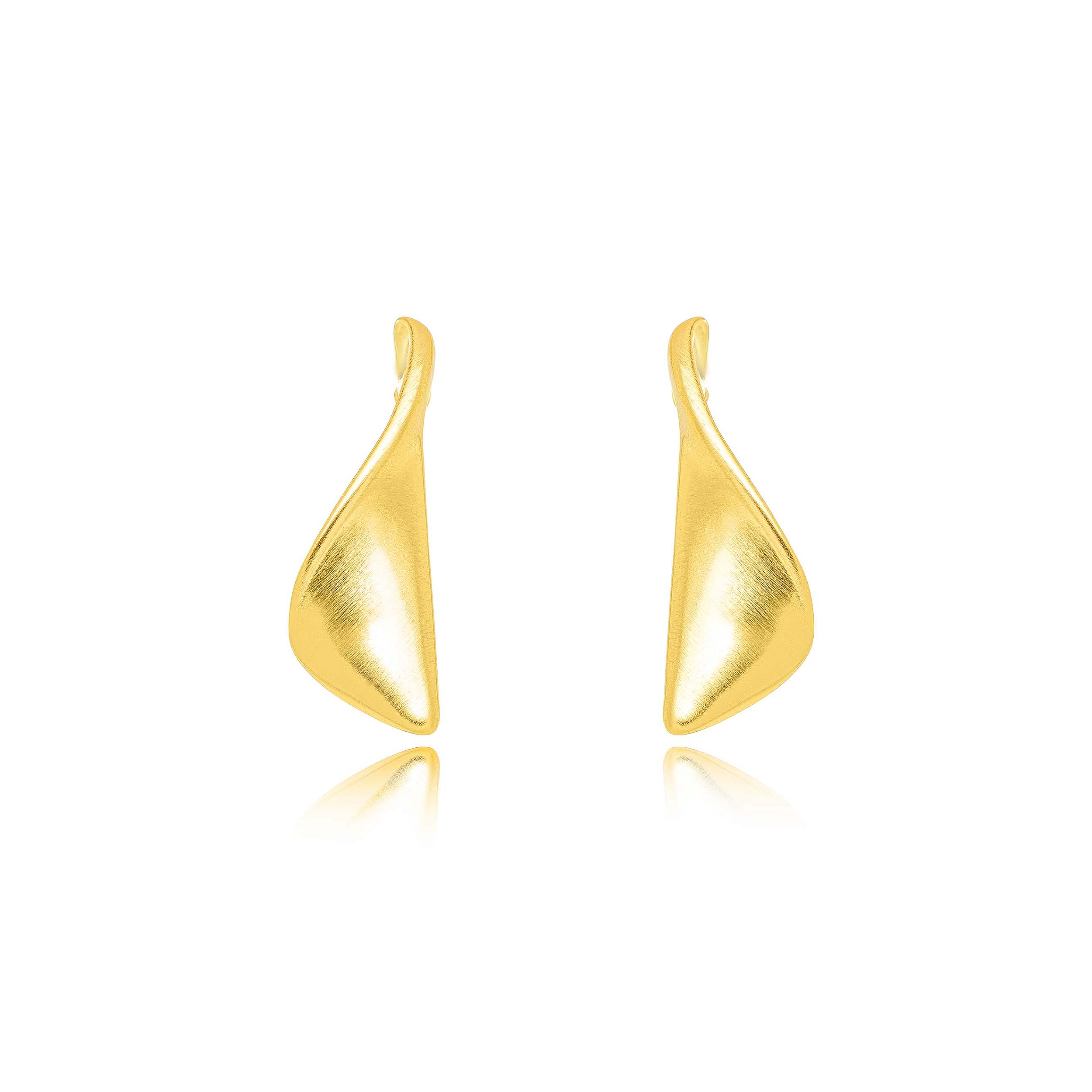 Brinco moderno e sofisticado, confeccionado em banho de ouro amarelo com acabamento fosco. Seu design elegante e assimétrico traz leveza e sofisticação, sendo uma peça versátil que combina tanto com looks clássicos quanto contemporâneos.