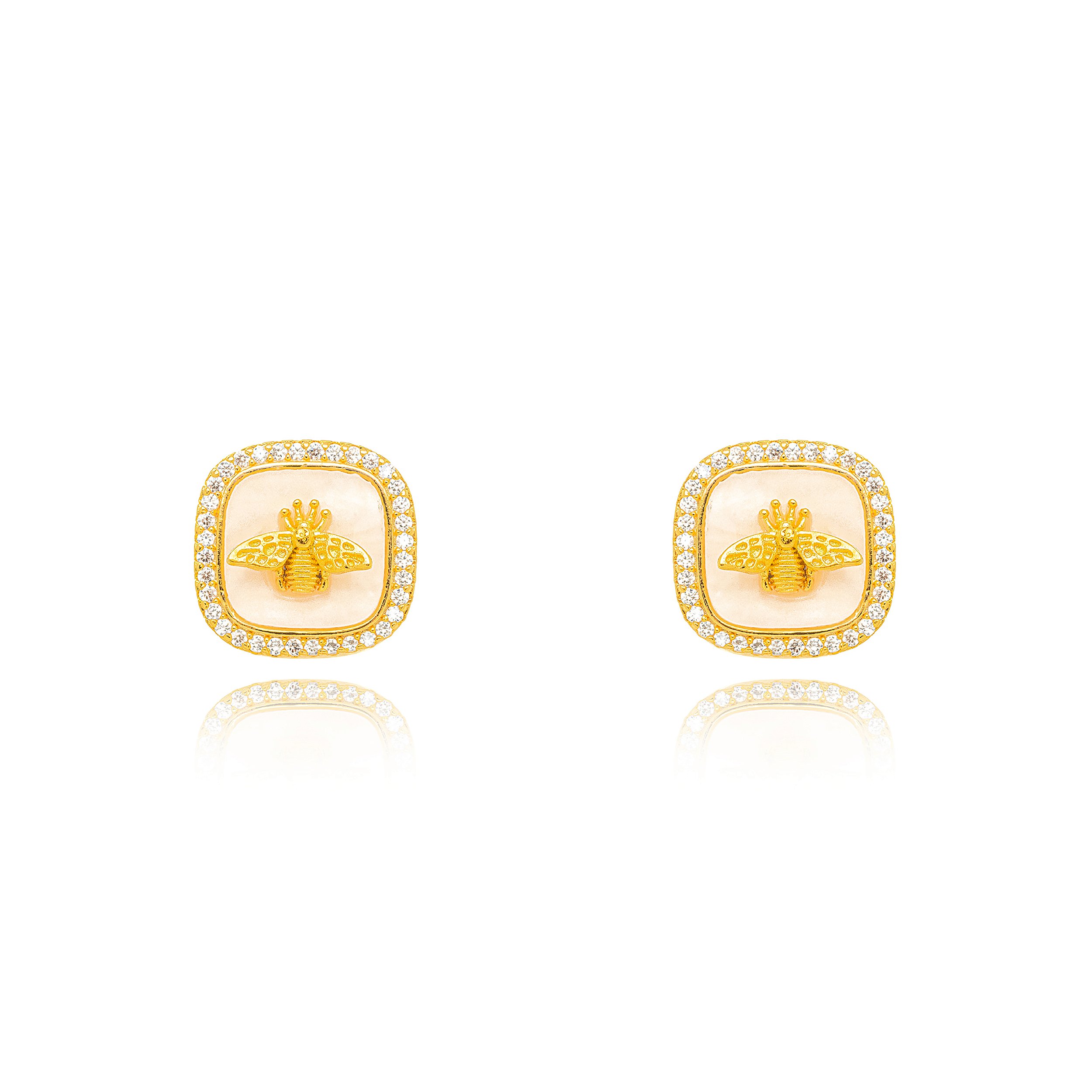 Brinco Madrepérola Inseto Cravejado – Banho Ouro Amarelo 18k