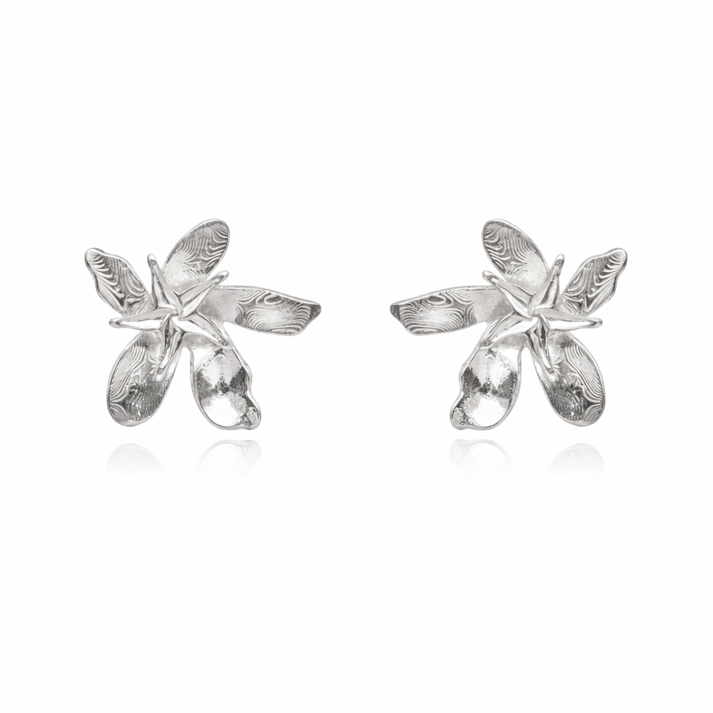 Brinco Semijoia Flor Lisa – Ródio Branco