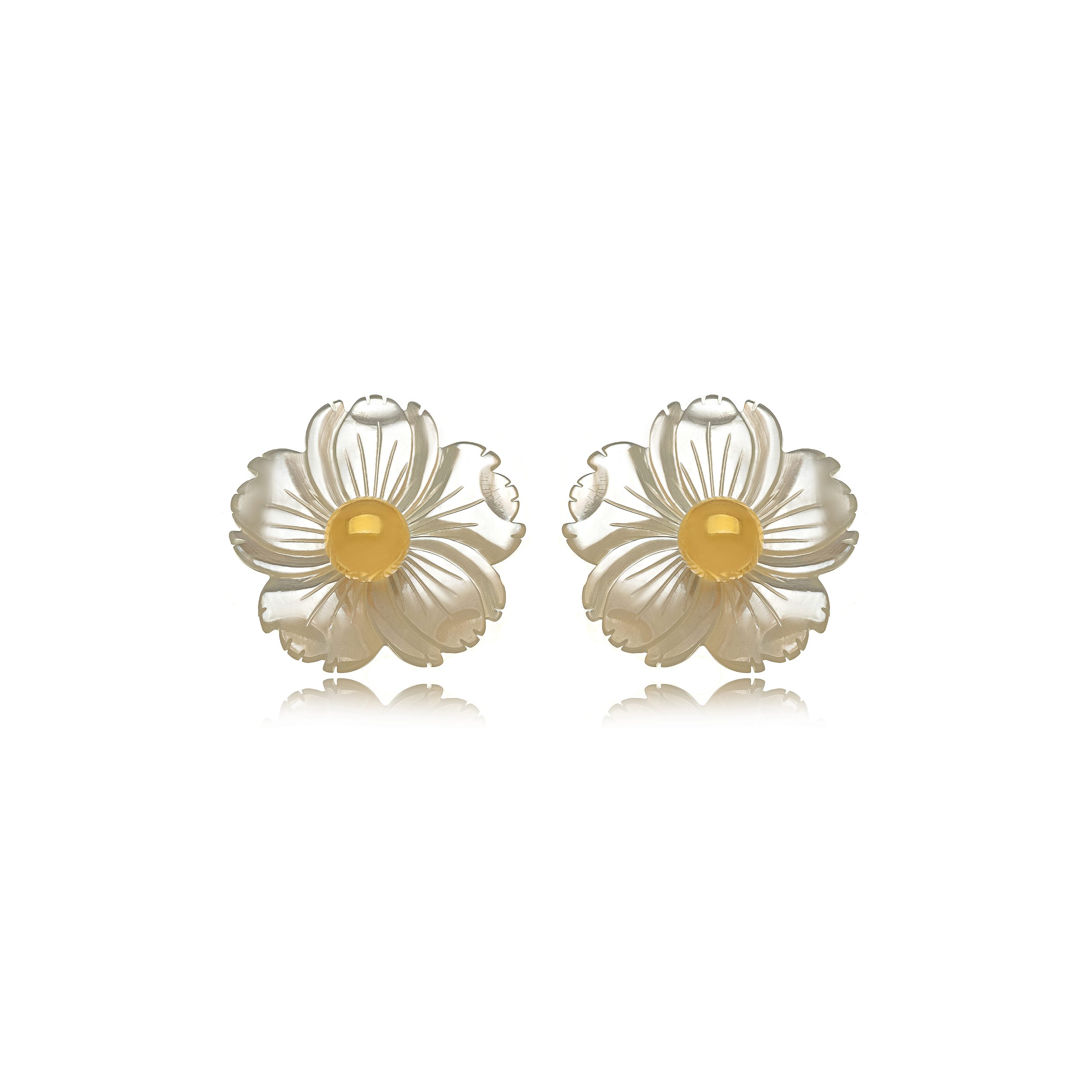 Brinco Flor Madrepérola – Banho de Ouro Amarelo 18K