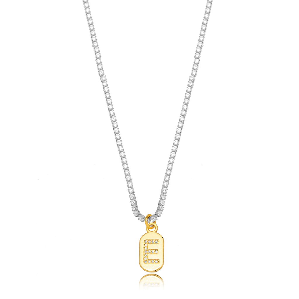 Choker Riviera Letra E Bicolor – Banho de Ouro Amarelo 18K e Ródio Branco