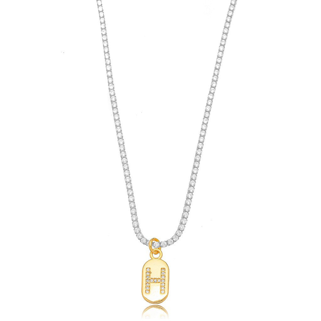 O pingente em formato de plaquinha com a letra  cravejada simboliza identidade, estilo e exclusividade, tornando a peça ideal para presentear ou eternizar uma inicial especial.