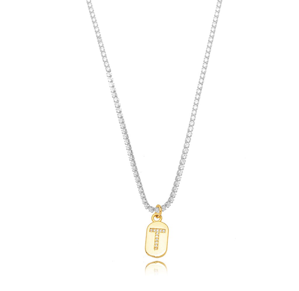 Choker Riviera Letra T Bicolor – Banho de Ouro Amarelo 18K e Ródio Branco