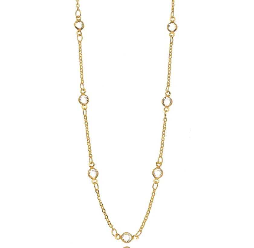 Choker Cristais confeccionado em banho de Ouro Amarelo 18K. O design delicado é composto por elos finos intercalados com cristais lapidados, que refletem a luz com sutileza e sofisticação.