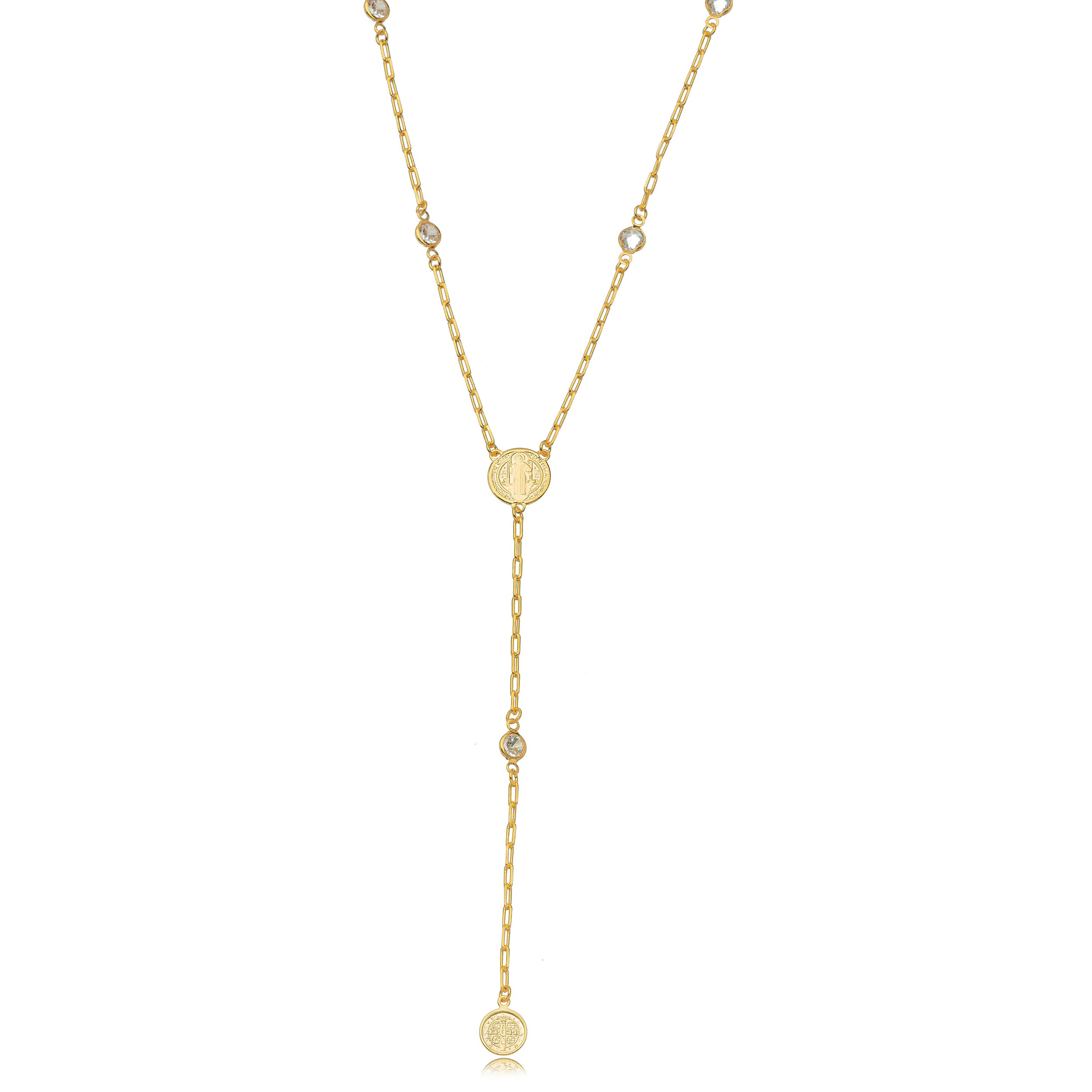 Colar Religioso Terço São Bento com Cristais – Ouro