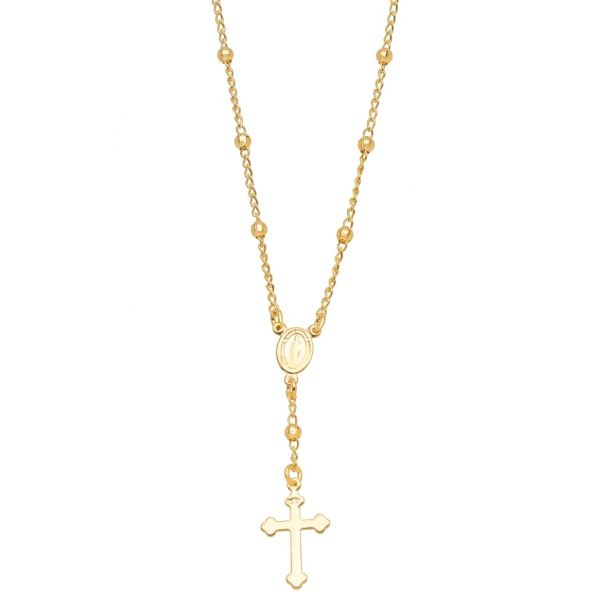 Colar Terço Cruz Bolas Lisas confeccionado em banho de ouro amarelo 18K.