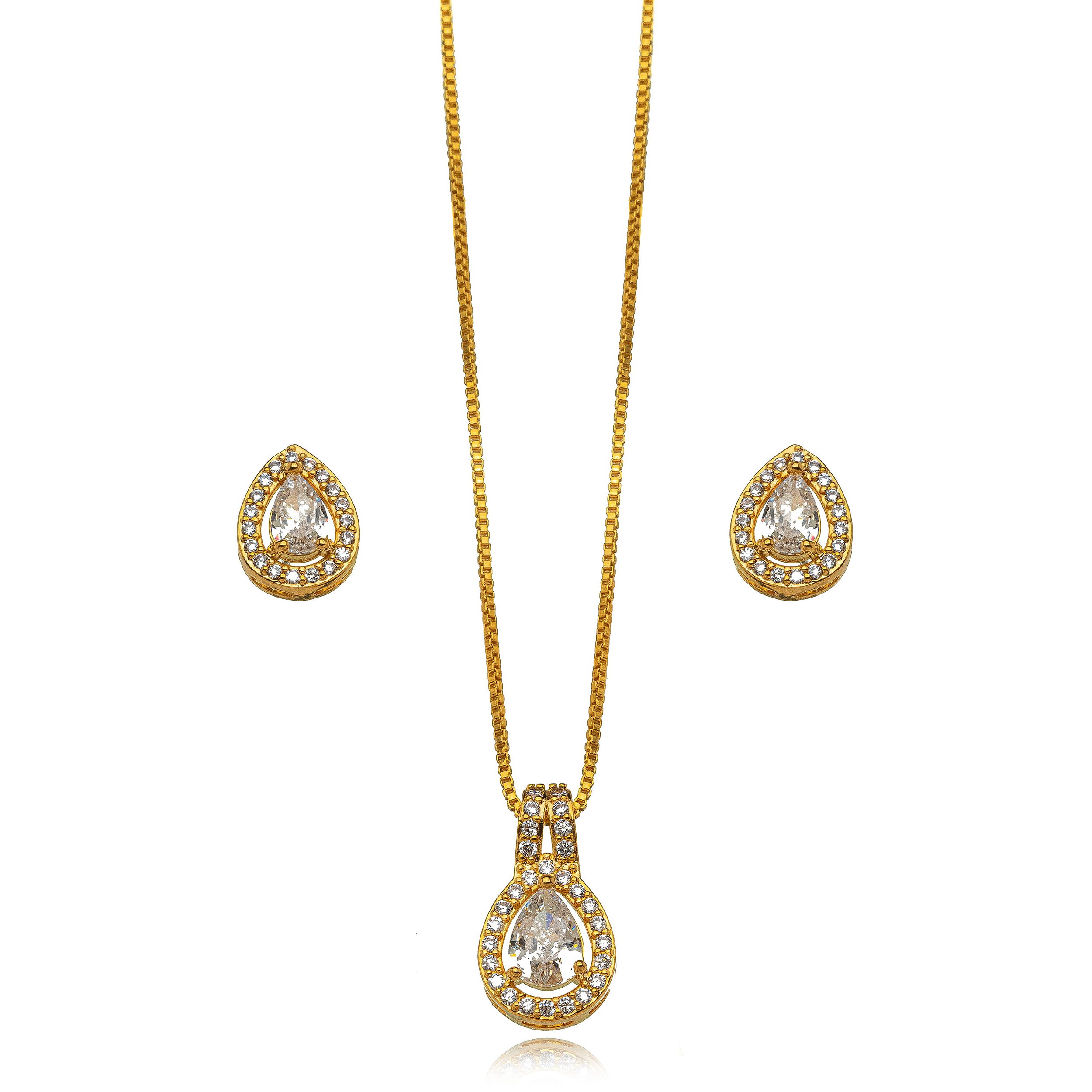 Conjunto Gota Cravejado – Banho de Ouro Amarelo 18K