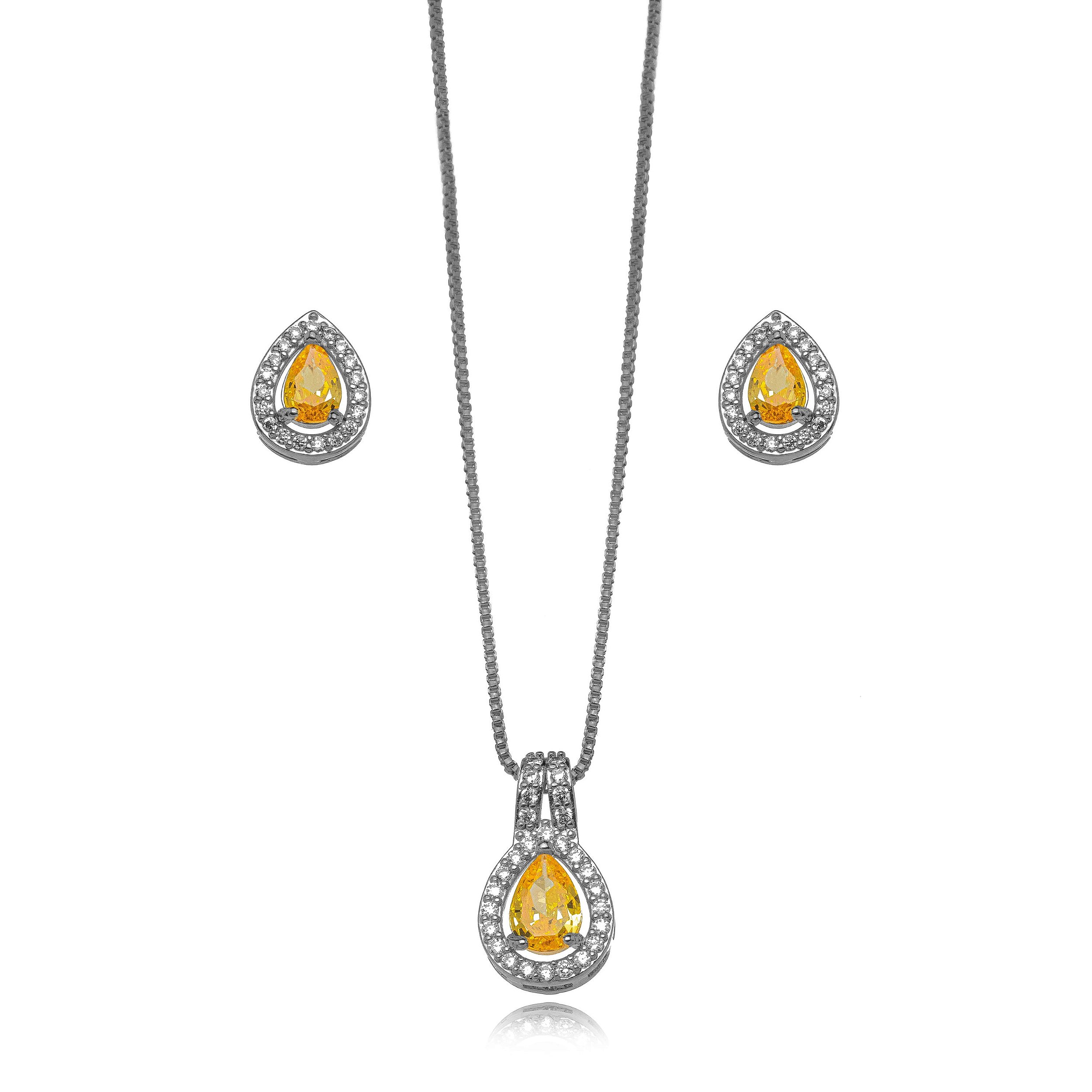 Conjunto Gotas Citrino Banho de Ródio Branco