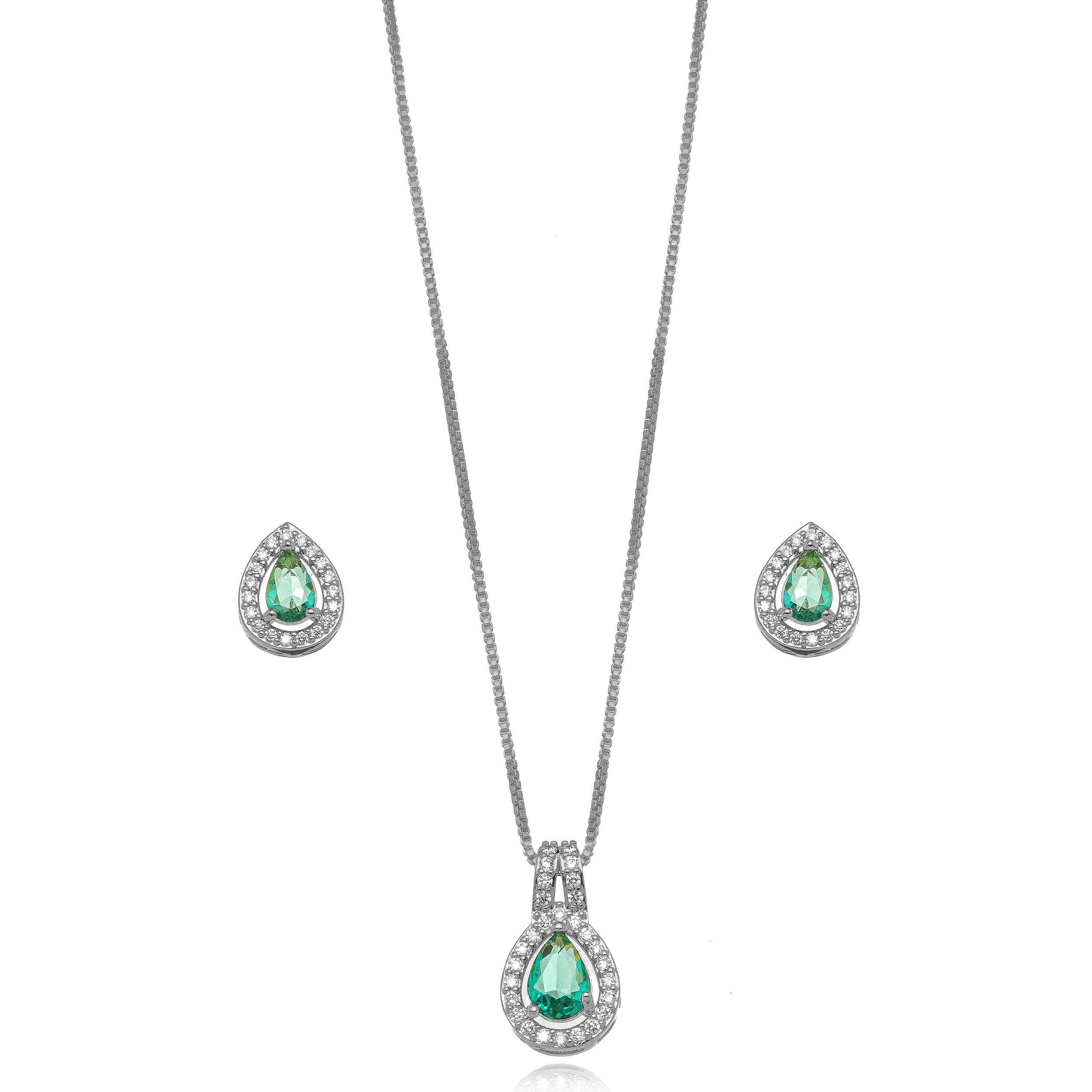 Conjunto Gotas Turmalina Banho de Ródio Branco
