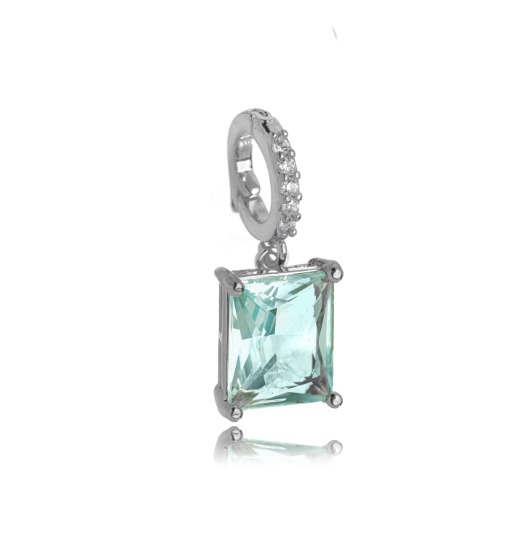 Pingente Semijoia Retangular - Ródio Branco Aqua Marinha