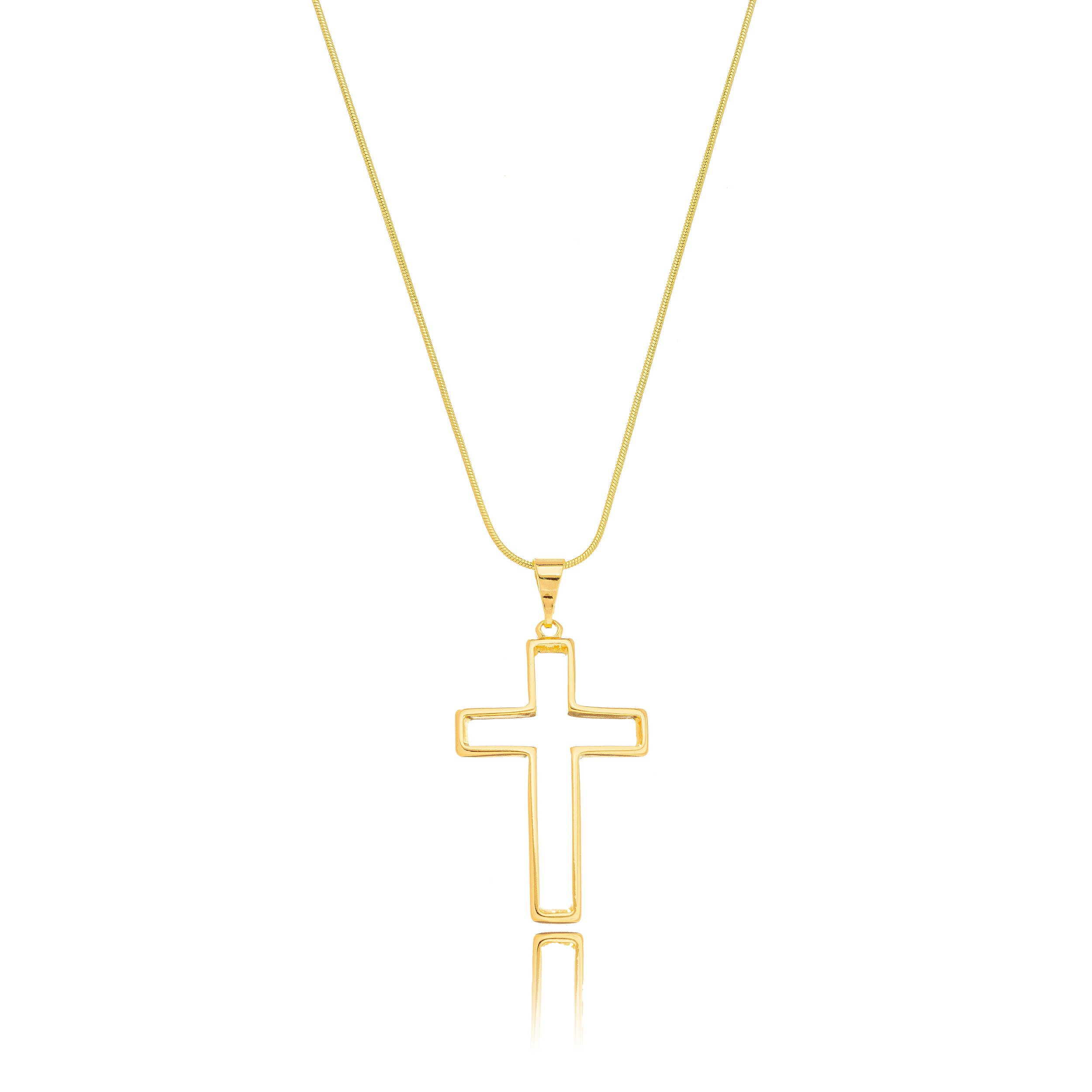 Colar Marabela Longo Corrente Rabo de Rato Cruz Lisa – Banho de Ouro Amarelo 18K